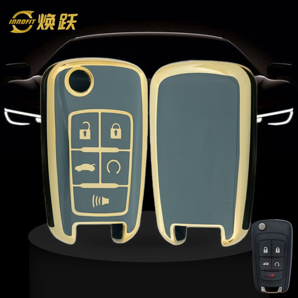 CED5T1-Granny Grey-Gold Plating- Car Key Cover For Chevrolet Opel GMC Holden