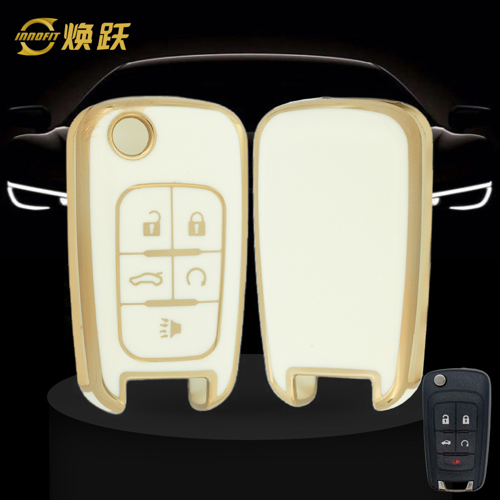 CED5T1-White-Gold Plating- Car Key Cover For Chevrolet Opel GMC Holden