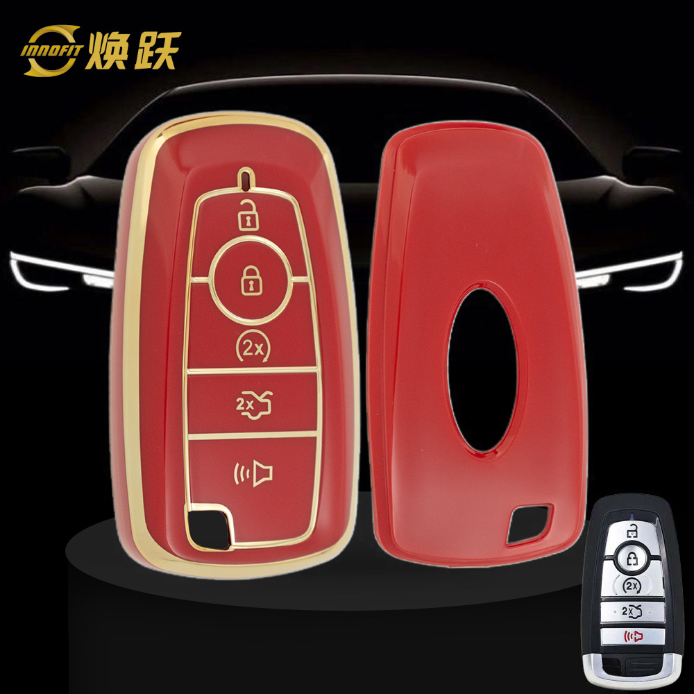 FOB4T1-Red-Gold Plating- Car Key Cover For Ford
