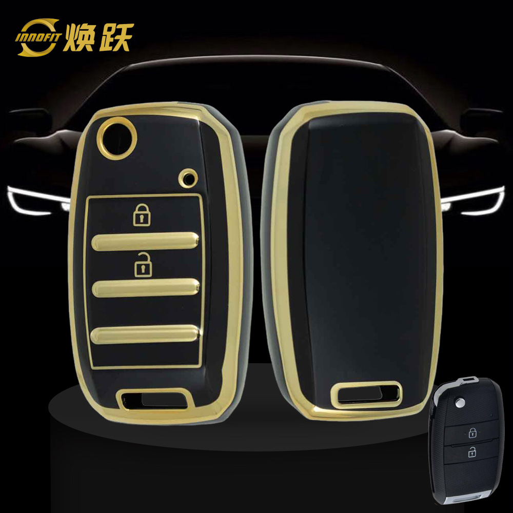 KIE3T1-Black-Gold Plating- Car Key Cover For Kia