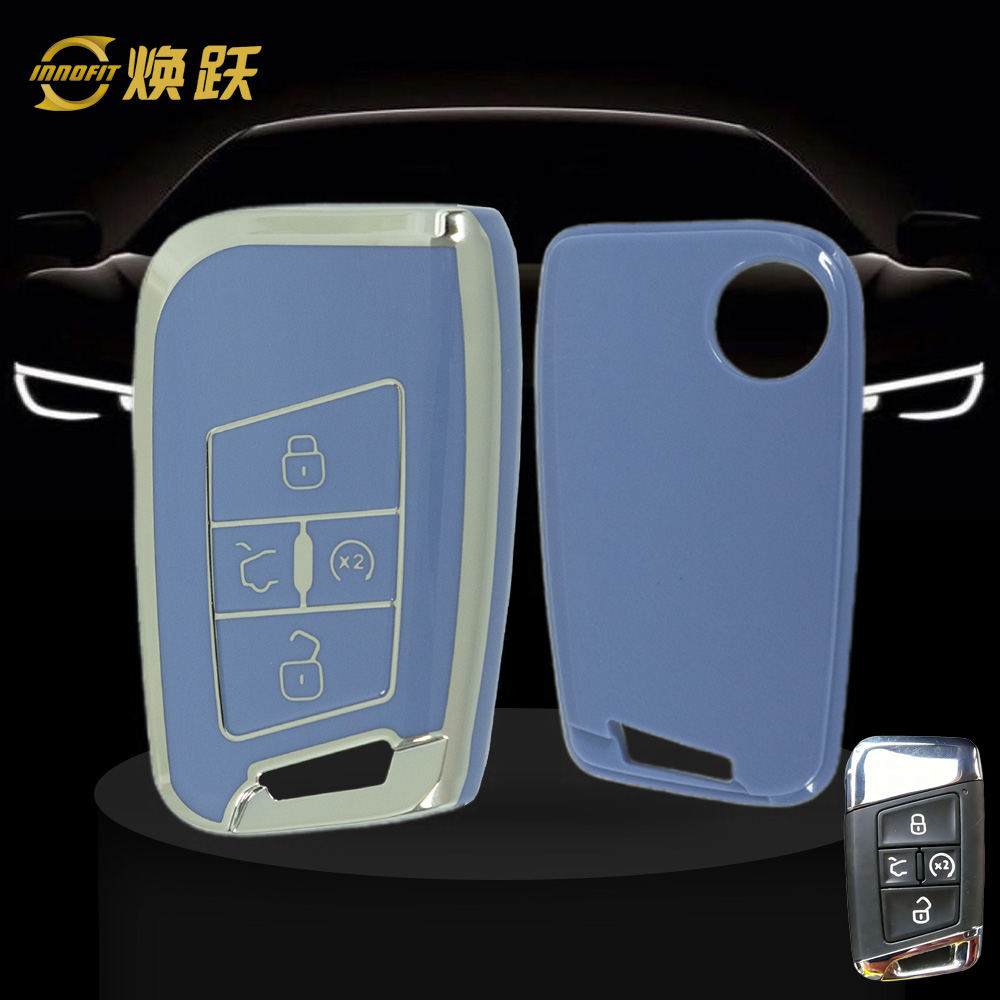 VOD2T1-Light Blue-Silver Plating- Car Key Cover For Volkswagen