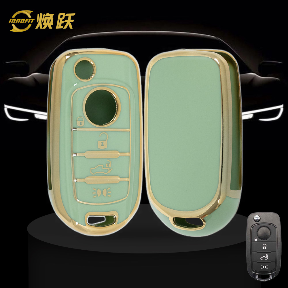 FIB3T1-Green-Gold Plating- Car Key Cover For Fiat