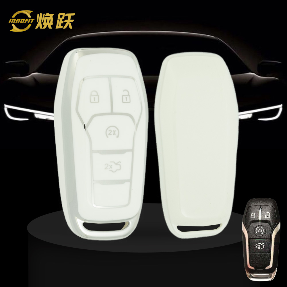 FOC1T1-White-Silver Plating- Car Key Cover For Ford