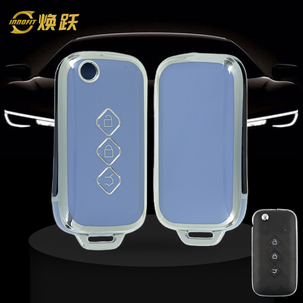 WUH1T1-Light Blue-Silver Plating- Car Key Cover For Wuling Chevrolet