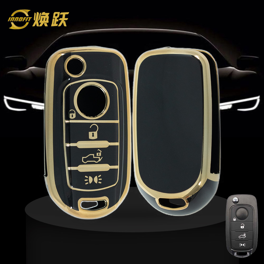 FIB3T1-Black-Gold Plating- Car Key Cover For Fiat