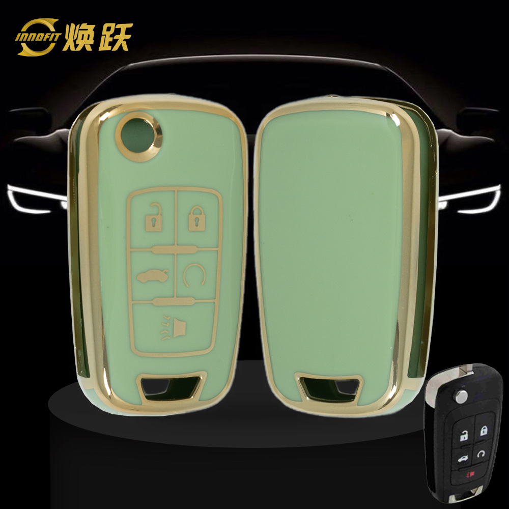 BUE5T1-Green-Gold Plating- Car Key Cover For Buick